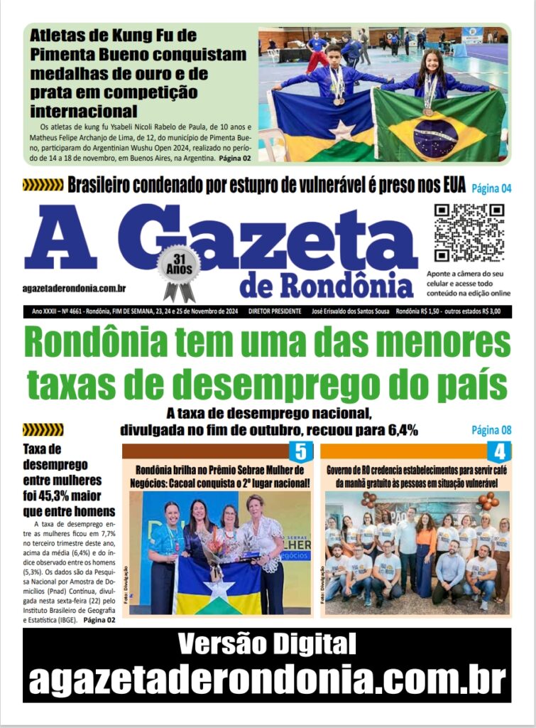 A GAZETA DE RONDÔNIA ATOS OFICIAIS PUBLICAÇÃO DOS DIAS 23, 24 E 25/11/2024 Por Diretor Chefe 22 de novembro de 2024 às 16h25