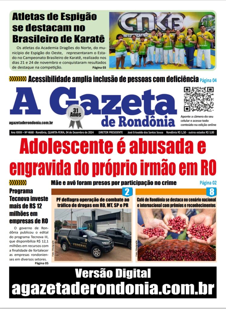 A GAZETA DE RONDÔNIA ATOS OFICIAIS PUBLICAÇÃO DO DIA 04/12/2024 Por Diretor Chefe 3 de dezembro de 2024 às 17h04