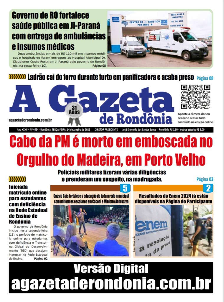 A GAZETA DE RONDÔNIA ATOS OFICIAIS PUBLICAÇÃO DO DIA 14/01/2025 Por Diretor Chefe 13 de janeiro de 2025 às 16h32