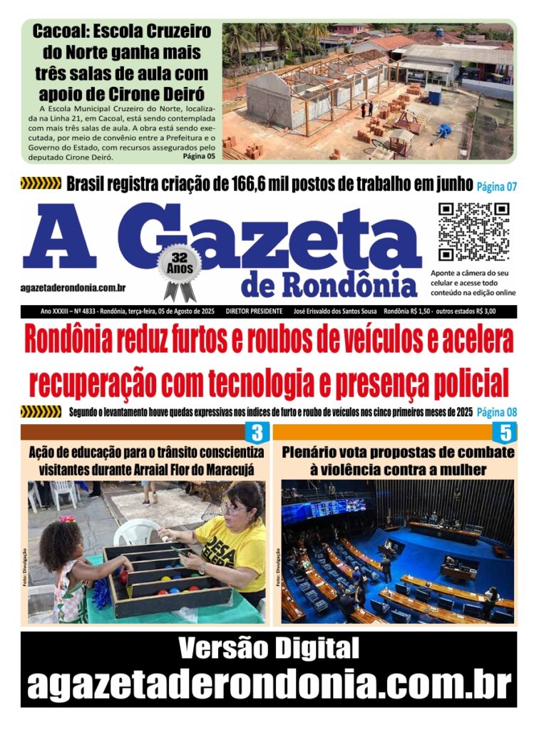 A GAZETA DE RONDÔNIA ATOS OFICIAIS PUBLICAÇÃO DO DIA 05/08/2025 Por Diretor Chefe 4 de agosto de 2025 às 17h47
