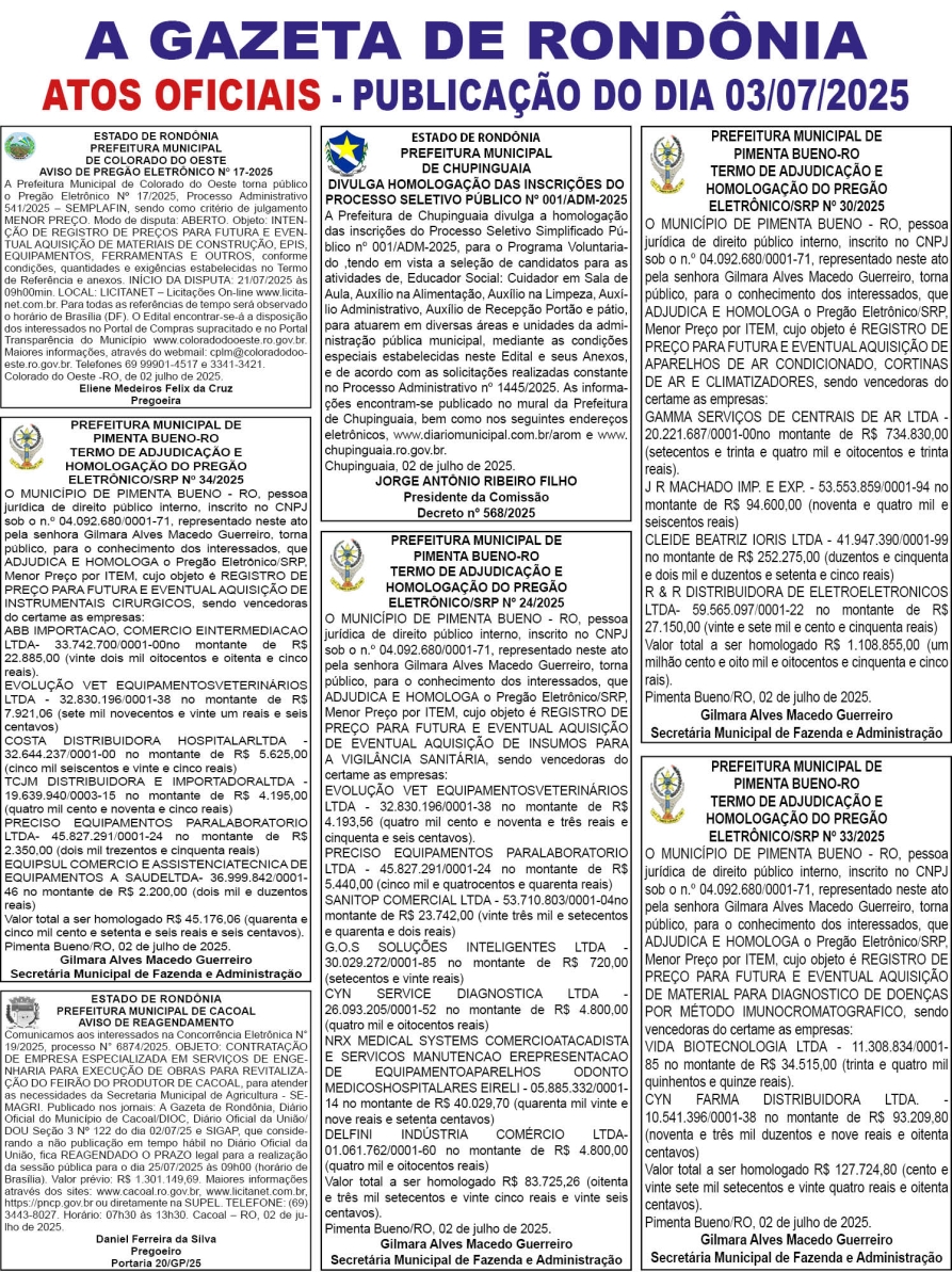 A GAZETA DE RONDÔNIA ATOS OFICIAIS PUBLICAÇÃO DO DIA 03/07/2025