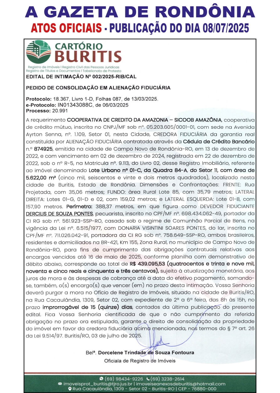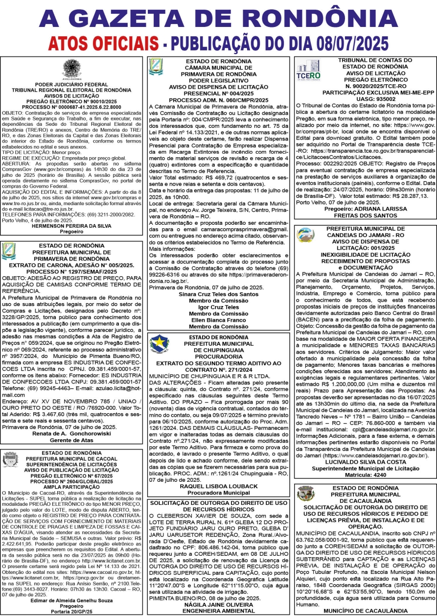 A GAZETA DE RONDÔNIA ATOS OFICIAIS PUBLICAÇÃO DO DIA 08/07/2025