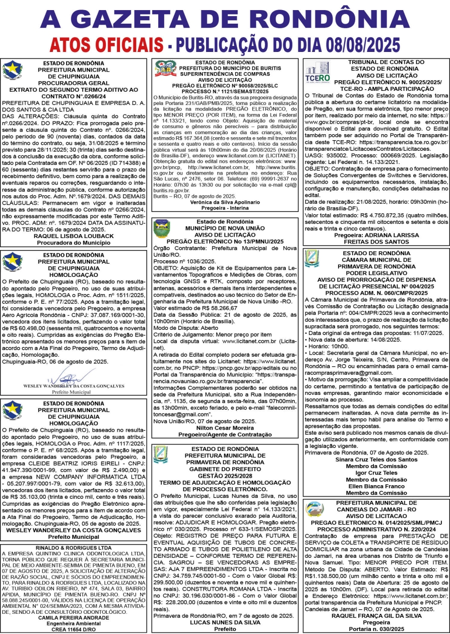 A GAZETA DE RONDÔNIA ATOS OFICIAIS PUBLICAÇÃO DO DIA 08/08/2025