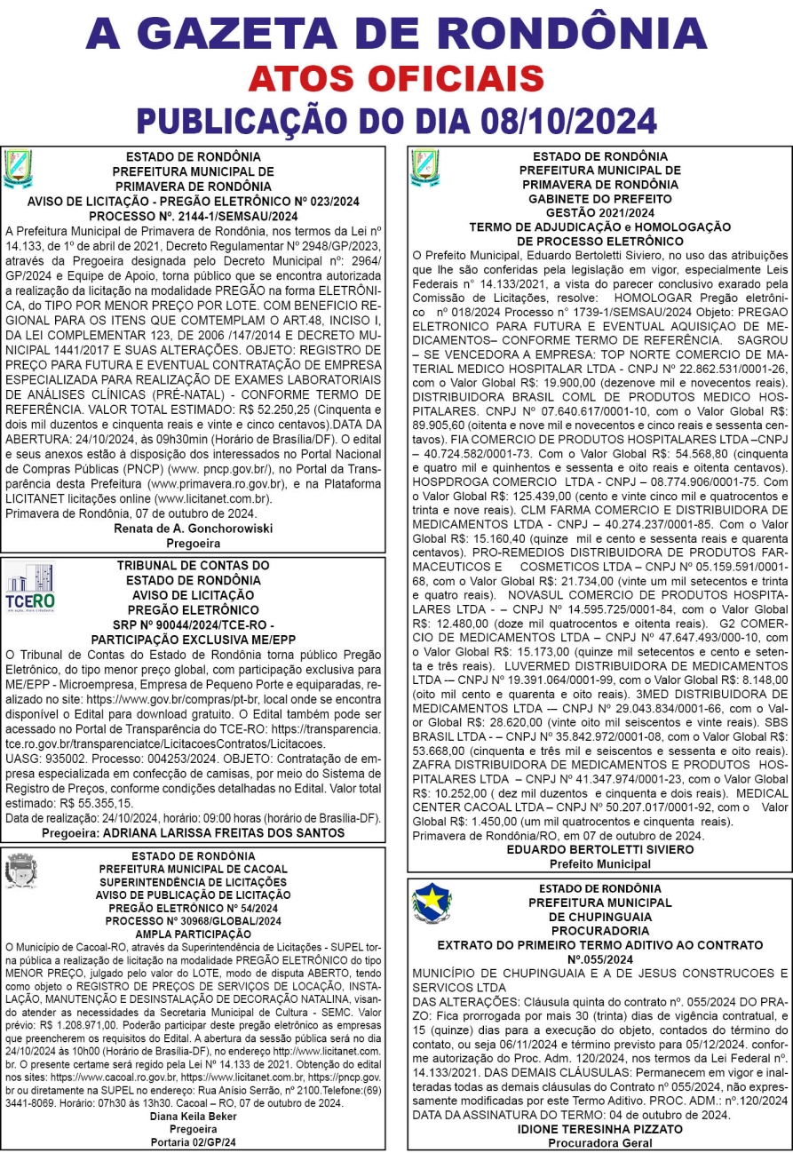 A GAZETA DE RONDÔNIA ATOS OFICIAIS PUBLICAÇÃO DO DIA 08/10/2024