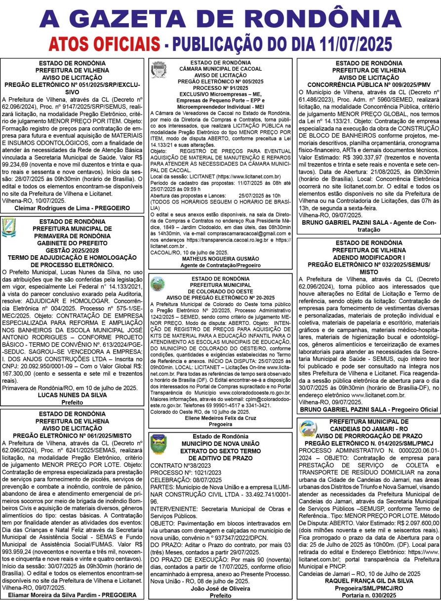 A GAZETA DE RONDÔNIA ATOS OFICIAIS PUBLICAÇÃO DO DIA 11/07/2025