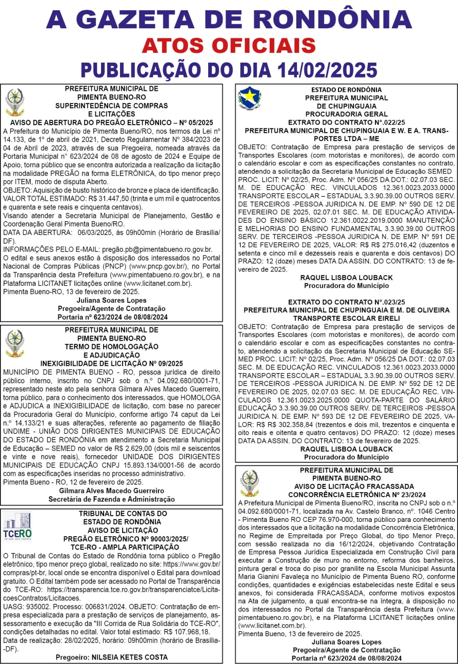 A GAZETA DE RONDÔNIA ATOS OFICIAIS PUBLICAÇÃO DO DIA 14/02/2025