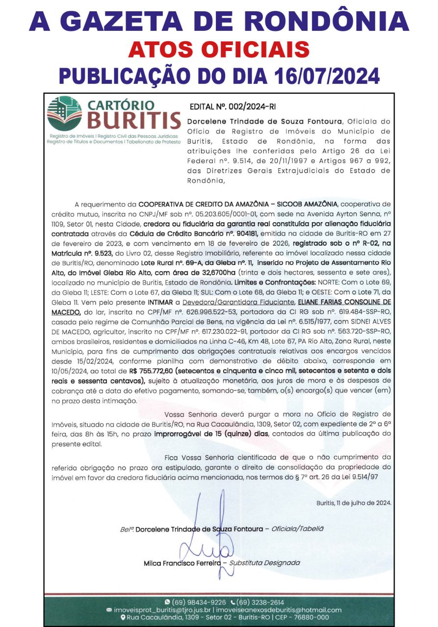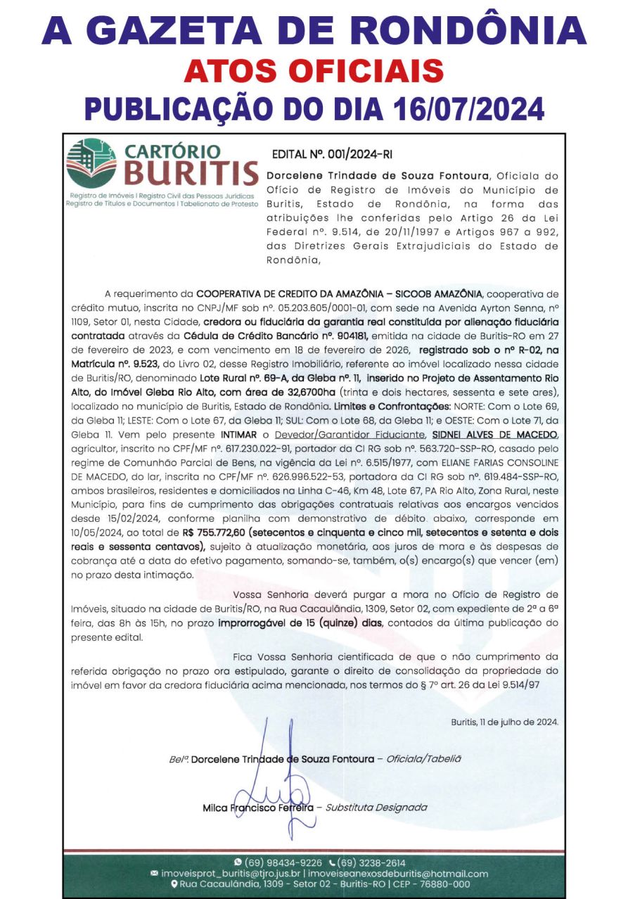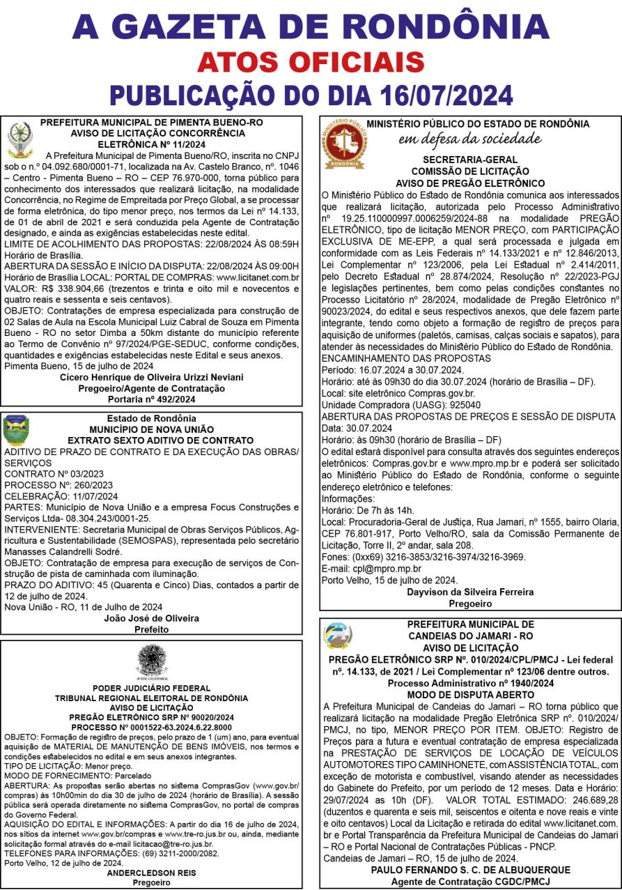 A GAZETA DE RONDÔNIA ATOS OFICIAIS PUBLICAÇÃO DO DIA 16/07/2024