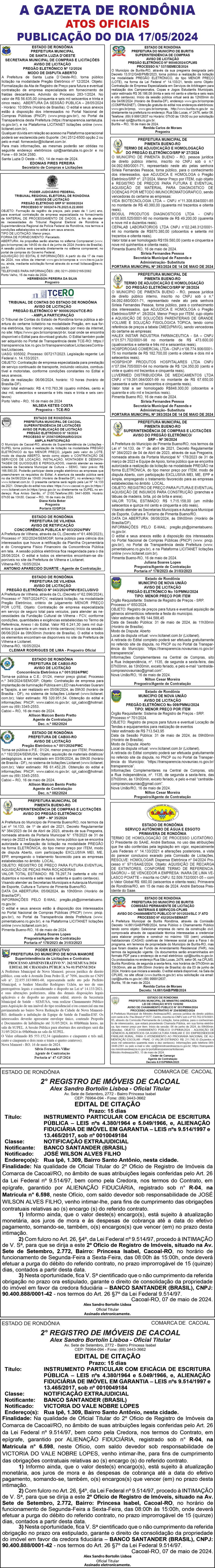 A GAZETA DE RONDÔNIA ATOS OFICIAIS PUBLICAÇÃO DO DIA 17/05/2024