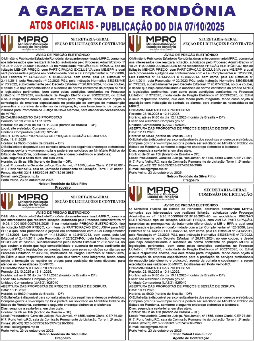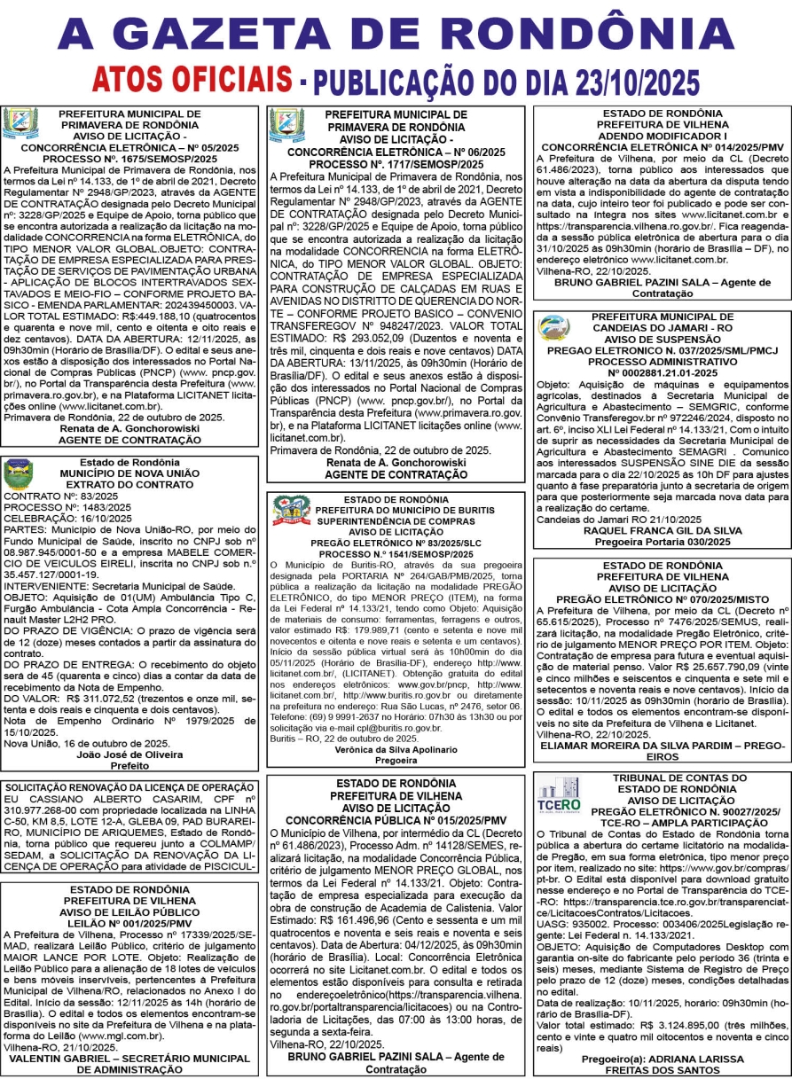 A GAZETA DE RONDÔNIA ATOS OFICIAIS PUBLICAÇÃO DO DIA 23/10/2025