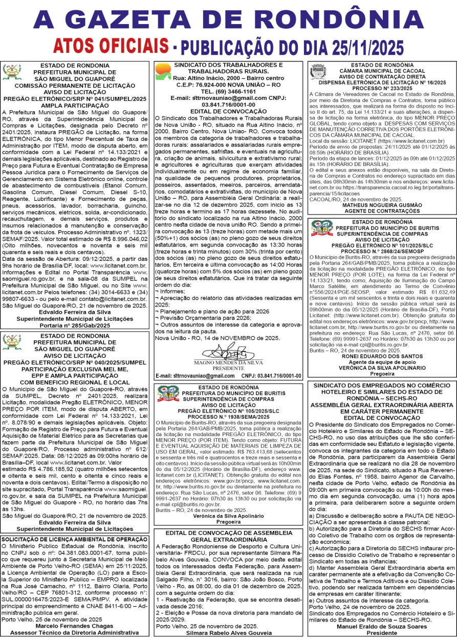 A GAZETA DE RONDÔNIA ATOS OFICIAIS PUBLICAÇÃO DO DIA 25/11/2025