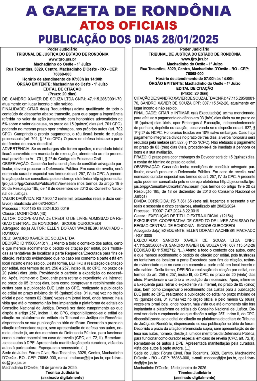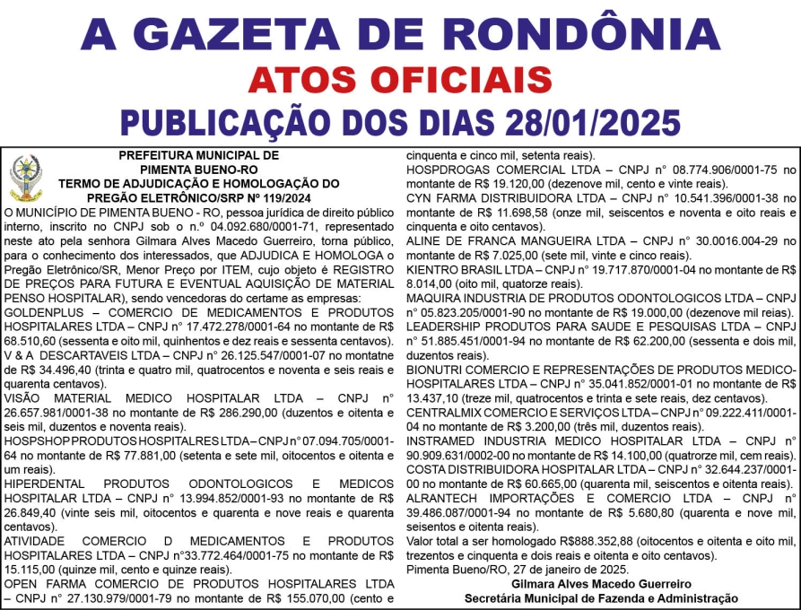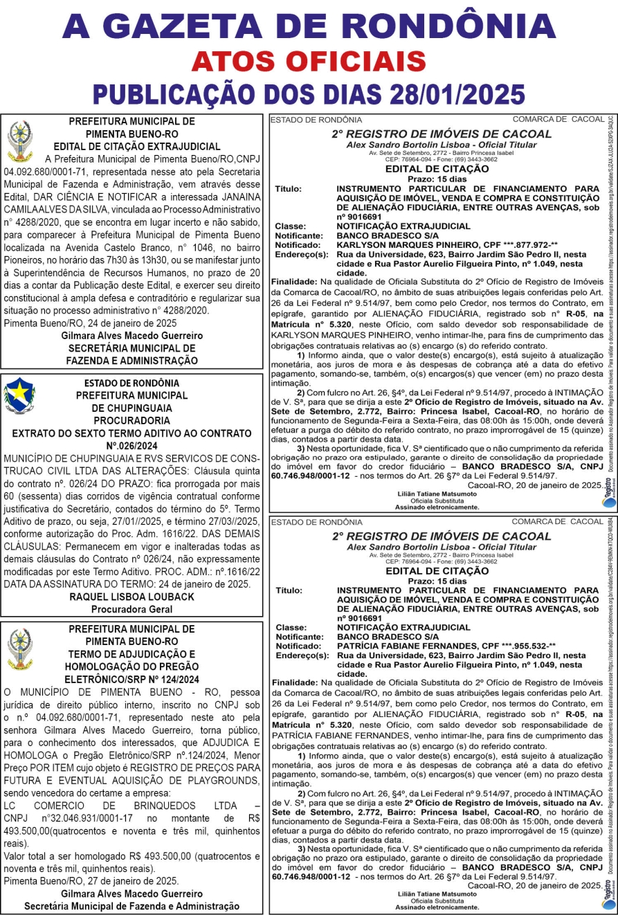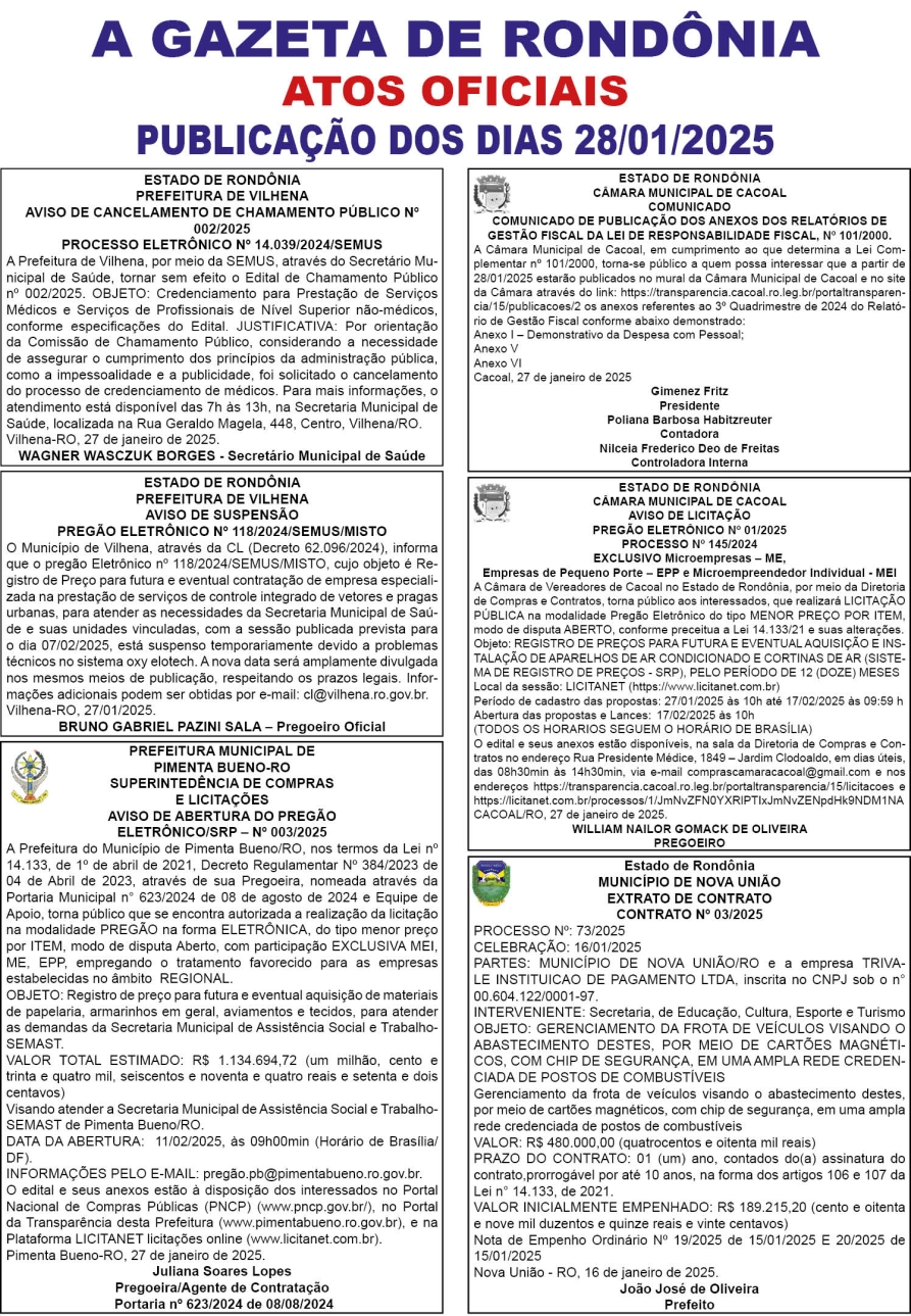 A GAZETA DE RONDÔNIA ATOS OFICIAIS PUBLICAÇÃO DO DIA 28/01/2025