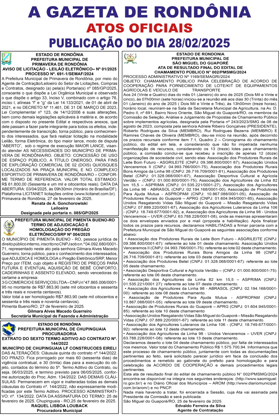 A GAZETA DE RONDÔNIA ATOS OFICIAIS PUBLICAÇÃO DO DIA 28/02/2025