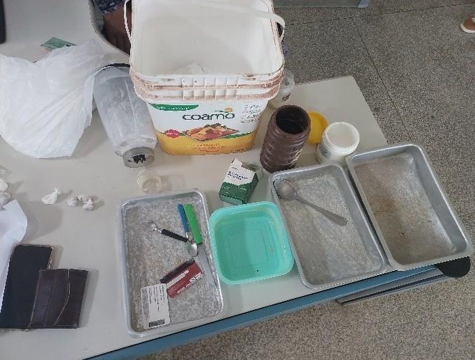 Com base nas informações ora levantadas e na análise da dinâmica observada, a guarnição realizou a abordagem do suspeito, sendo encontradas porções de substância análoga à cocaína em sua posse. Diante do cenário de possível confirmação de ação criminosa obtidas no local, outra equipe do PATAMO deslocou-se até o imóvel, onde flagrou o segundo envolvido em pleno processo de refino de entorpecentes, em um ambiente caracterizado como laboratório improvisado. Durante as buscas, foram apreendidas substâncias análogas à cocaína, crack, insumos utilizados na produção e desdobramento, balança de precisão, materiais para embalo e quantia em dinheiro.
