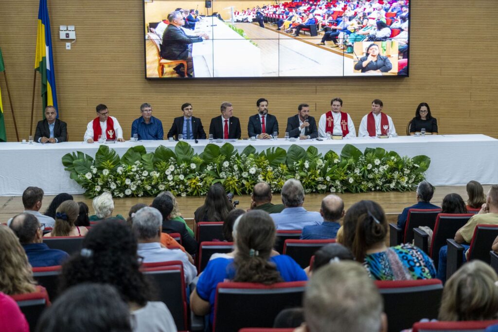 Em seguida, o prefeito se deslocou até a Assembleia Legislativa, onde participou da sessão solene em homenagem aos 53 anos de atuação em Rondônia da Igreja Evangélica Luterana do Brasil. A sessão solene foi proposta pelo deputado Luizinho Goebel e reuniu lideranças da Igreja Luterana e fiéis.