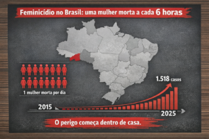 O Brasil atravessa um dos momentos mais graves da sua história no combate à violência contra mulheres. Em 2025, o país registrou 1.518 feminicídios, o maior número desde a criação da Lei do Feminicídio, em 2015. Na prática, os dados revelam uma realidade brutal: quase quatro mulheres foram assassinadas por dia apenas por serem mulheres.
