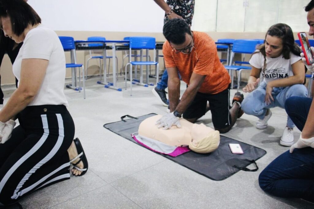 Dada a importância dos procedimentos de primeiros socorros em salvar vidas, o Governo de Rondônia promoveu a formação do Projeto Primeiros Socorros na Escola – RCP (Reanimação Cardiopulmonar), para cerca de 200 participantes, entre professores de Educação Física, orientadores e representantes do Grêmio Estudantil, das escolas estaduais de Porto Velho. A capacitação, realizada com o objetivo de instruir os integrantes na abordagem da vítima de acidente ou mal súbito, aconteceu na Escola Estadual de Ensino Médio Major Guapindaia.
