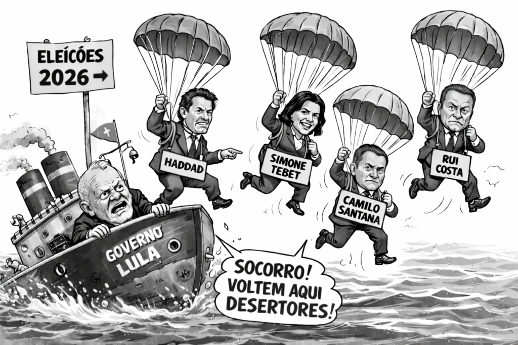 CHARGE-VÁRIOS MINISTROS ABANDONAM O GOVERNO PARA DISPUTAR AS ELEIÇÕES 2026 Por Paulo de Tarso 13 de janeiro de 2026 às 17h02