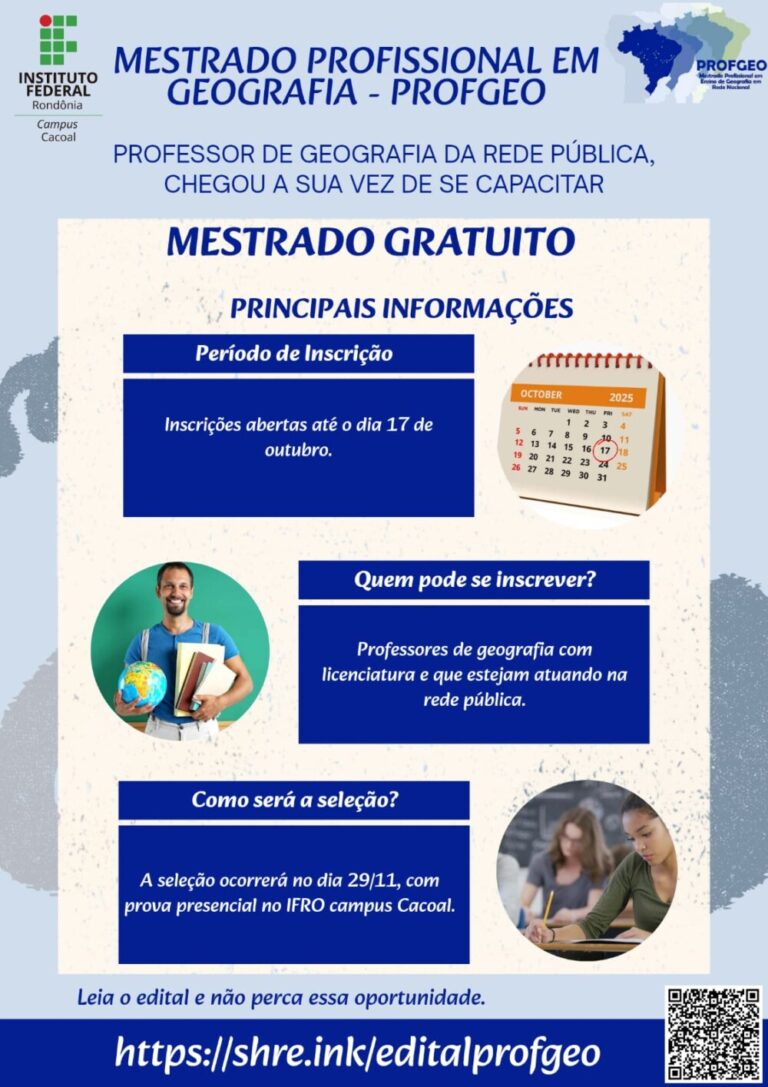IFRO Cacoal abre vagas para Mestrado Profissional Gratuito Cacoal, Classificados 3 de outubro de 2025