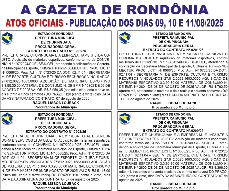 A GAZETA DE RONDÔNIA ATOS OFICIAIS PUBLICAÇÃO DOS DIAS 09, 10 E 11/08/2025 Por Diretor Chefe 9 de agosto de 2025 às 10h43
