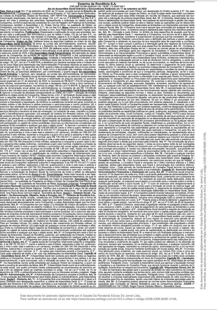 Ata da Assembleia Geral Ordinária e Extraordinária – Estanho de Rondônia S.A Por Diretor Chefe 29 de novembro de 2025 às 08h45
