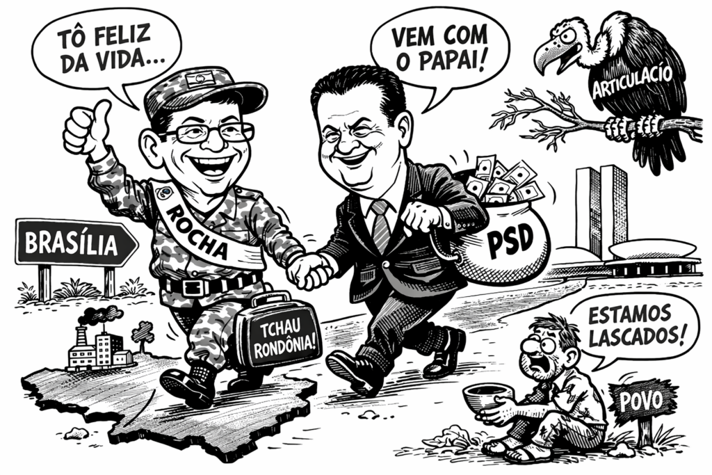 Ilustração satírica de caráter simbólico que aborda disputas de poder em grandes organizações institucionais. Personagens, falas e situações são fictícios. A interpretação é subjetiva.