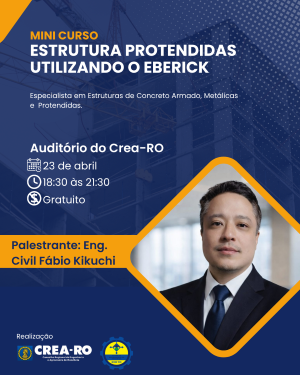 O Crea-RO, em parceria com o Clube de Engenharia, realiza no próximo 23 de abril, em Porto Velho, o mini-curso “Estruturas Protendidas utilizando o Eberick”, voltado à capacitação de engenheiros, profissionais da área tecnológica e estudantes interessados em aprimorar conhecimentos em soluções estruturais modernas aplicadas à construção civil.