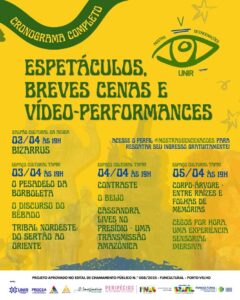 As atividades acontecem em diferentes espaços culturais da capital, como a Unir Centro, o Espaço Cultural Tapiri e o Galpão Cultural da Acuda, criando uma circulação que aproxima o público de distintos territórios da arte.