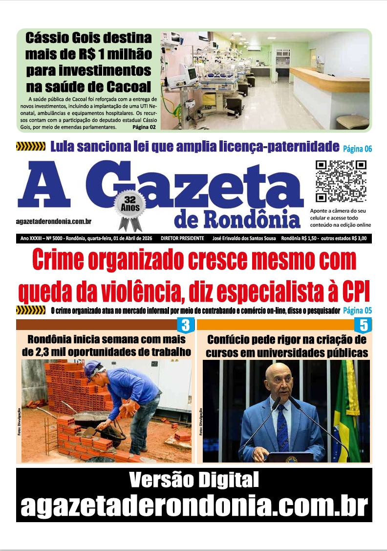 A Gazeta de Rondônia Edição 5000 – quarta-feira – 01.04.2026