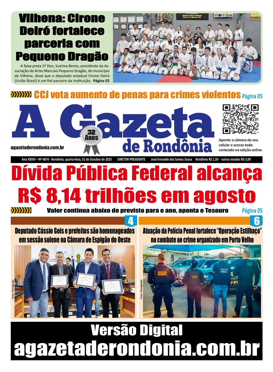 A Gazeta de Rondônia Edição 4874 – quarta-feira – 01.10.2025