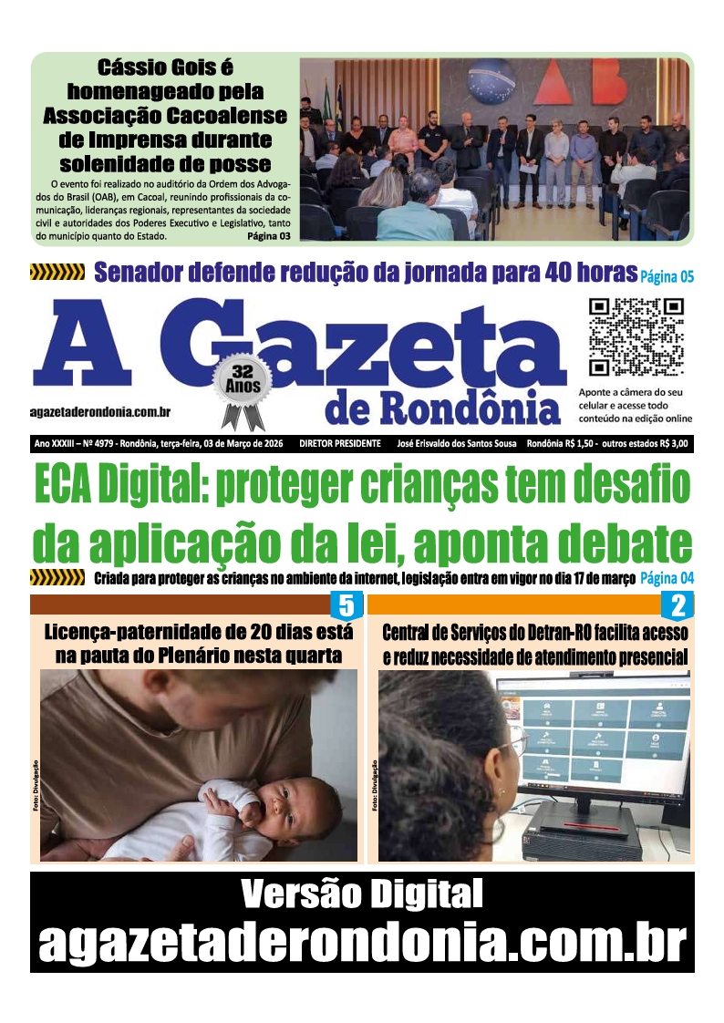 A Gazeta de Rondônia Edição 4979 – terça-feira – 03.03.2026