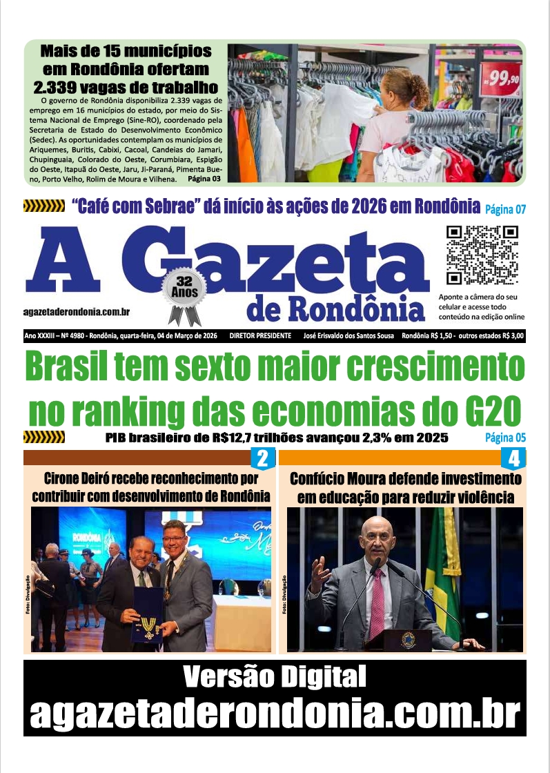 A Gazeta de Rondônia Edição 4980 – quarta-feira – 04.03.2026