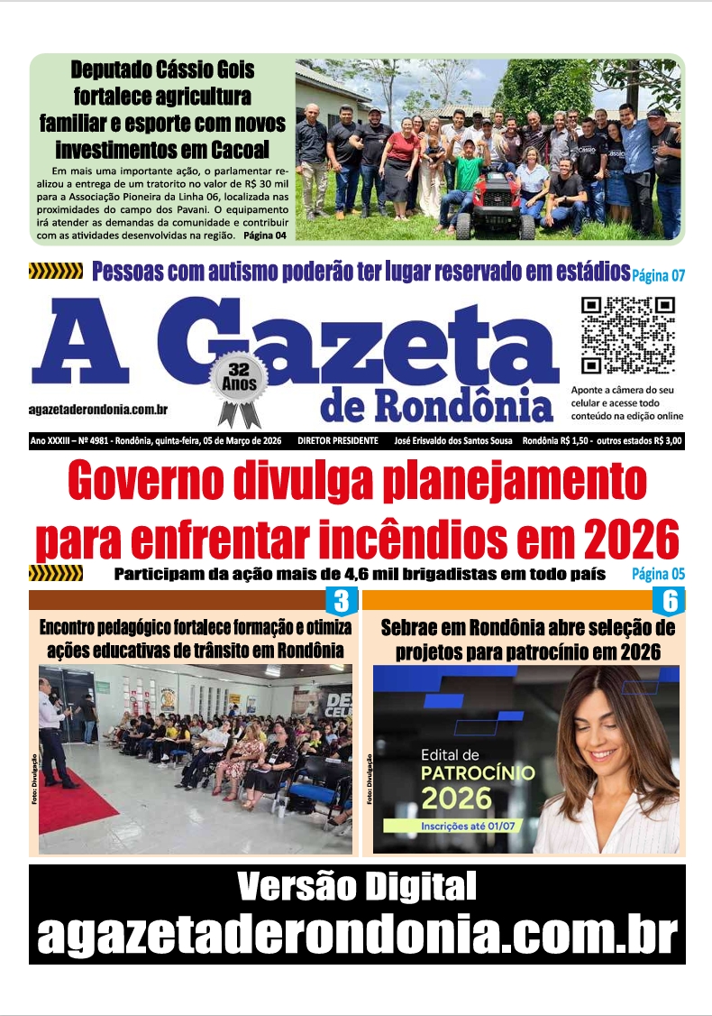 A Gazeta de Rondônia Edição 4981 – quinta-feira – 05.03.2026