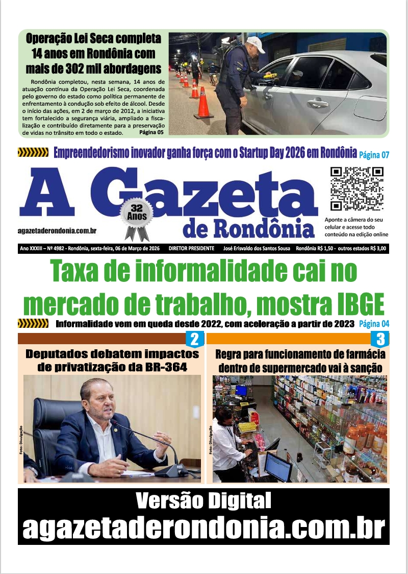 A Gazeta de Rondônia Edição 4982 – sexta-feira – 06.03.2026
