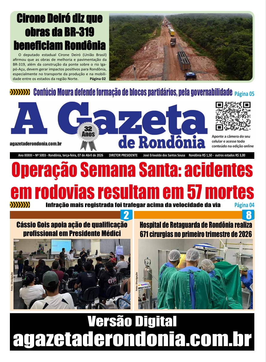 A Gazeta de Rondônia Edição 5003 – terça-feira – 07.04.2026