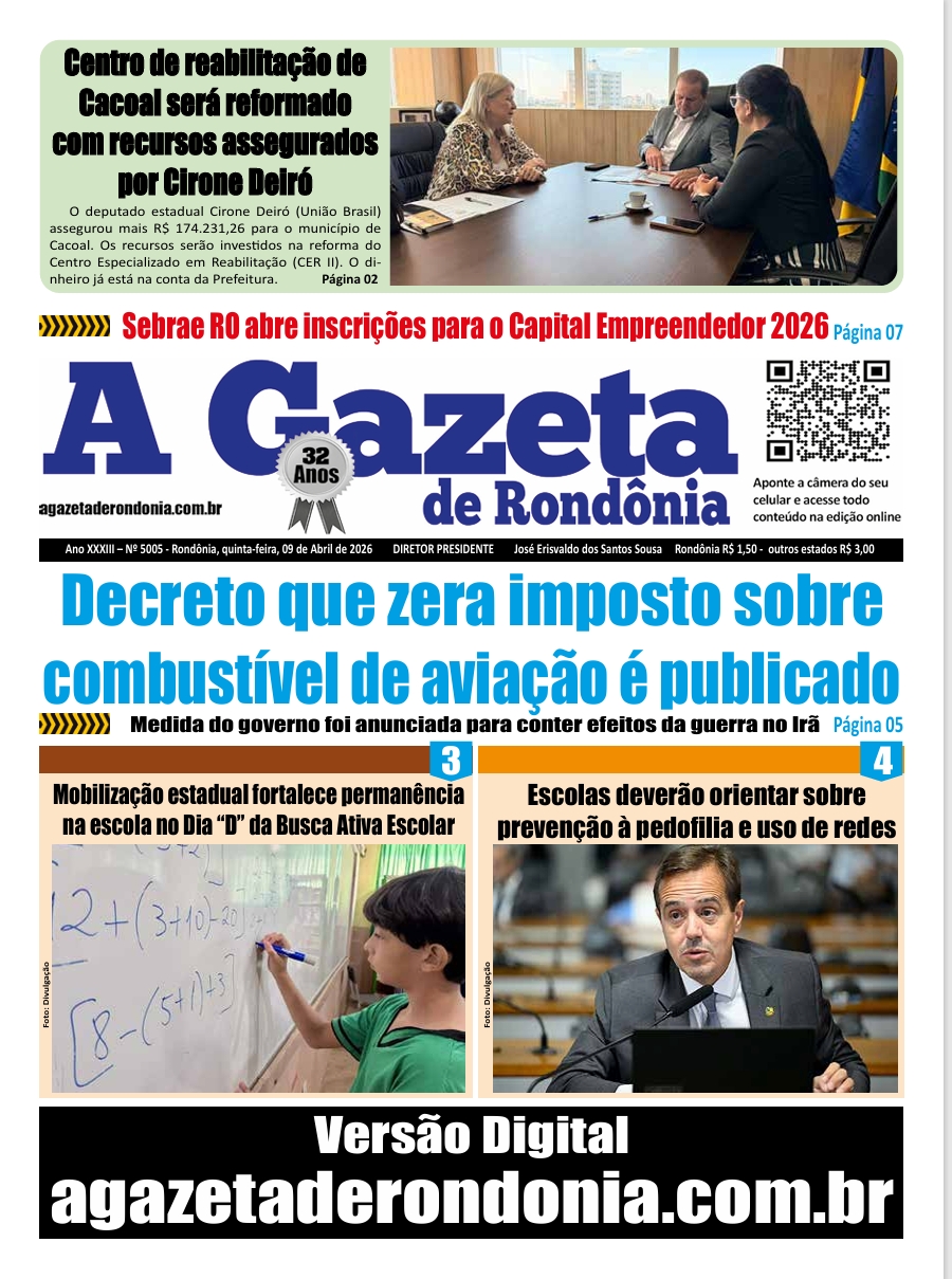 A Gazeta de Rondônia Edição 5005 – quarta-feira – 09.04.2026