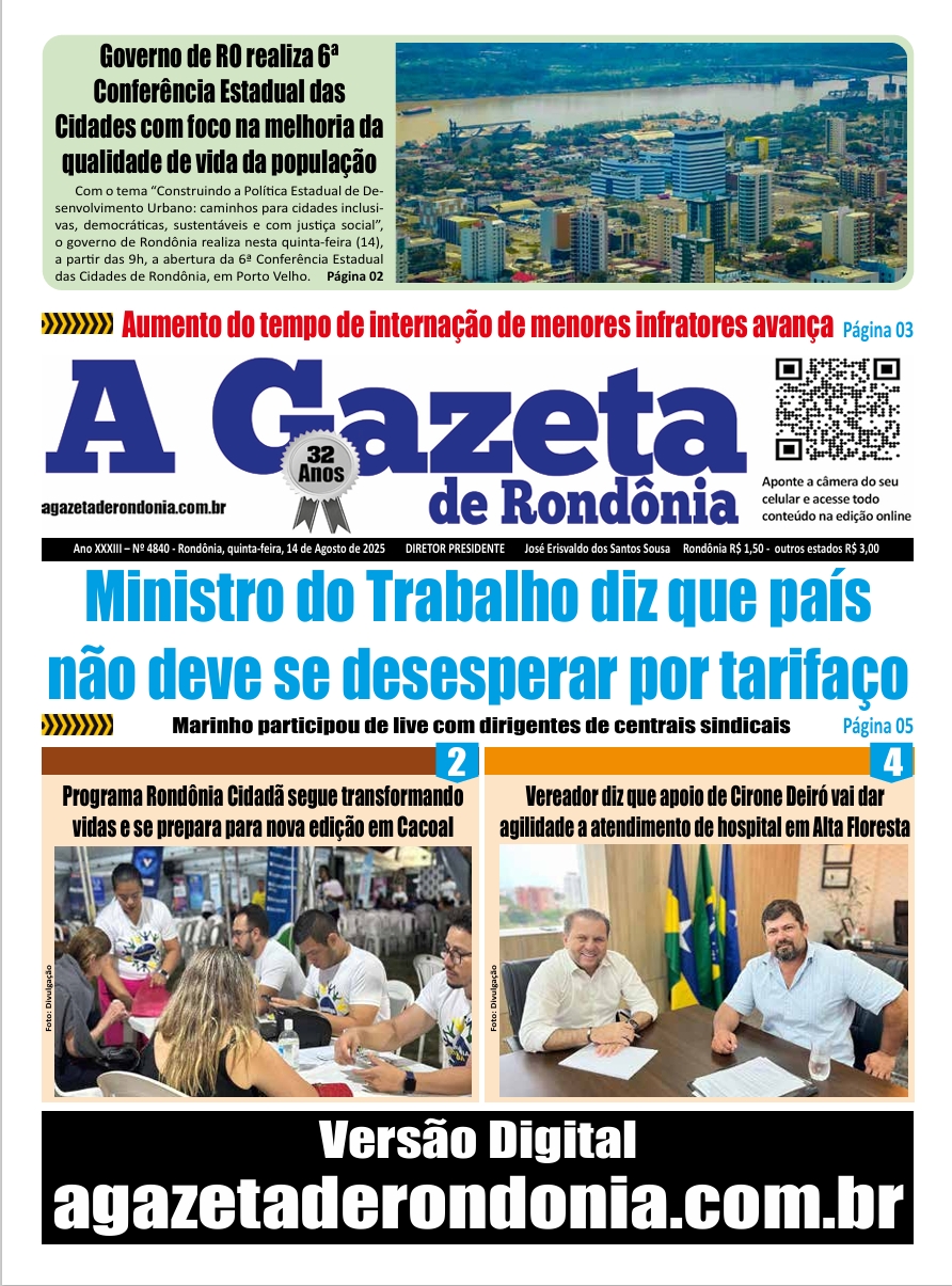 A Gazeta de Rondônia Edição 4840 – quinta-feira – 14.08.2025