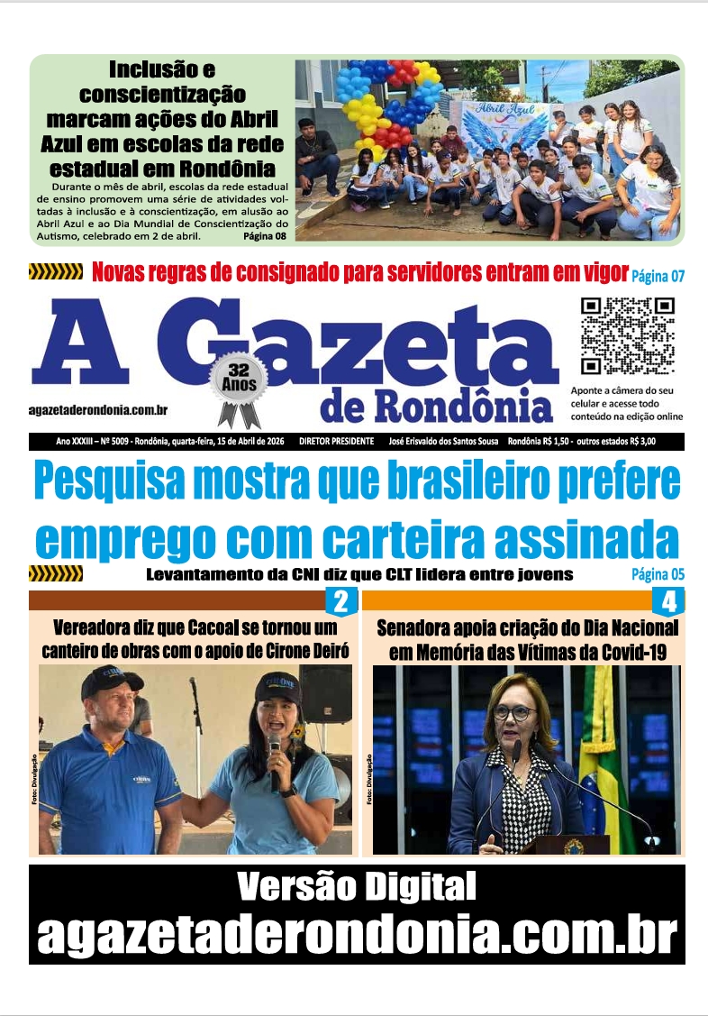 A Gazeta de Rondônia Edição 5009 – quarta-feira – 15.04.2026