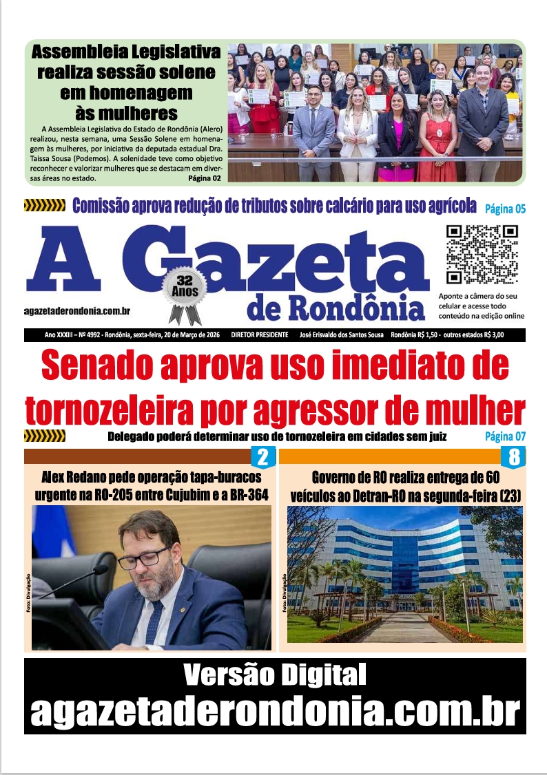 A Gazeta de Rondônia Edição 4992 – sexta-feira – 20.03.2026
