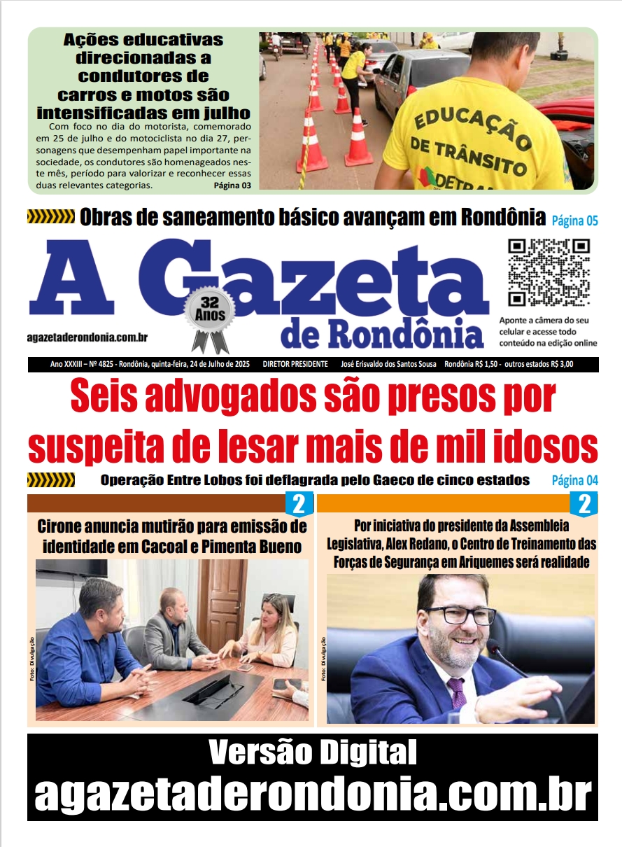 A Gazeta de Rondônia Edição 4825 – quinta-feira – 24.07.2025