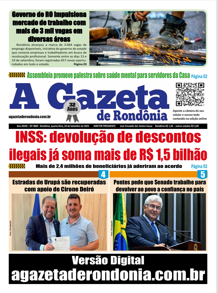 A Gazeta de Rondônia Edição 4869 – quarta-feira – 24.09.2025