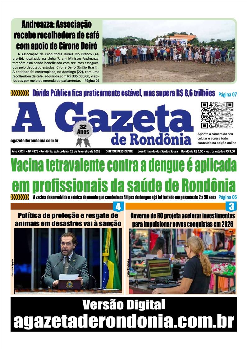 A Gazeta de Rondônia Edição 4976 – quinta-feira – 26.02.2026