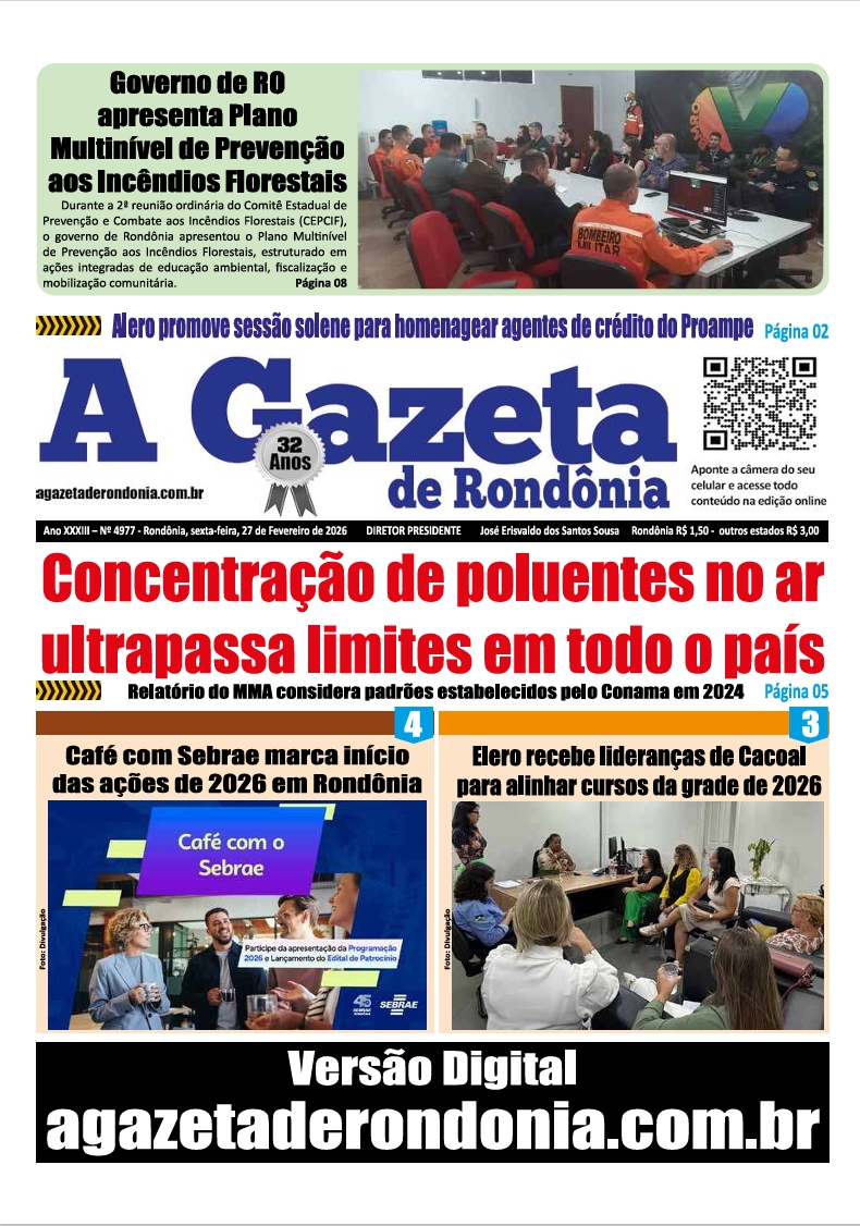 A Gazeta de Rondônia Edição 4977 – sexta-feira – 27.02.2026