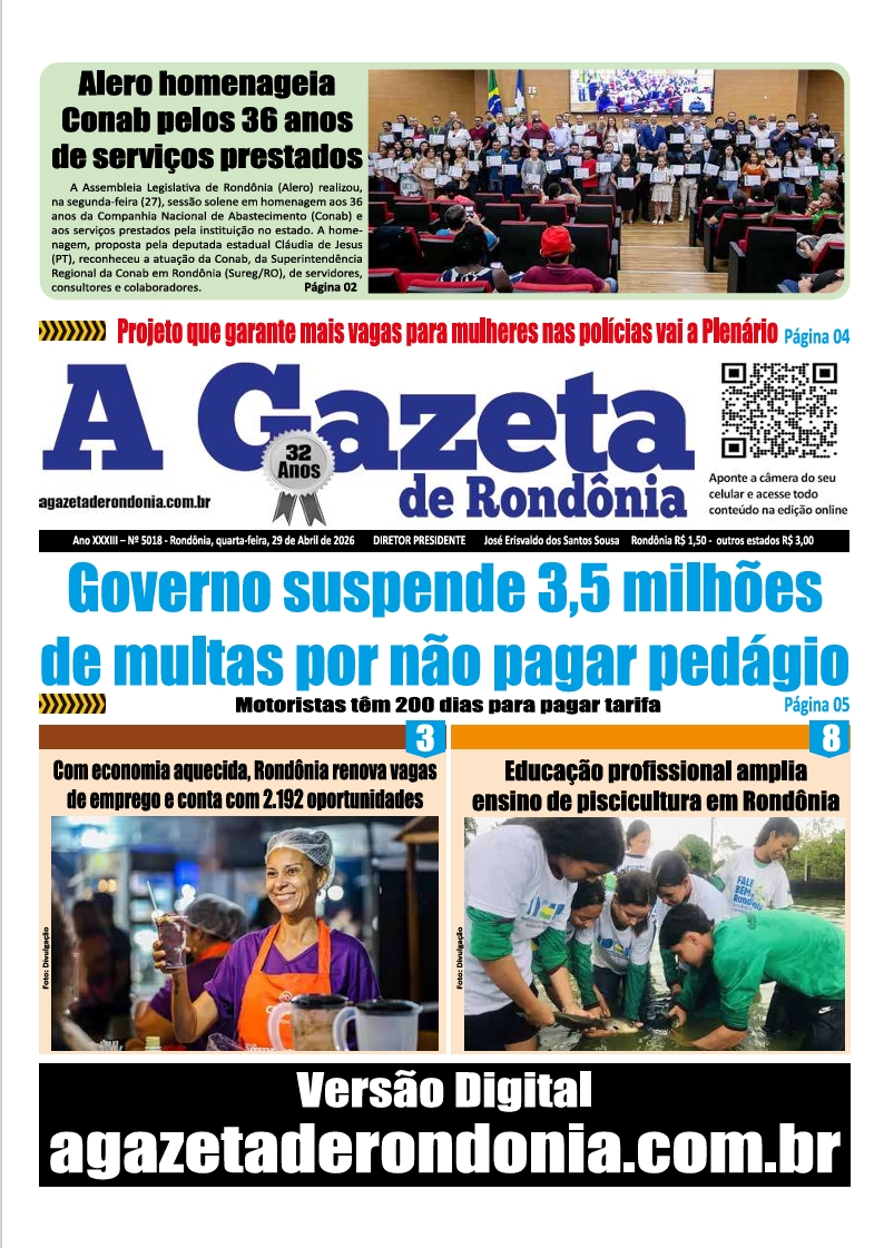 A Gazeta de Rondônia Edição 5018 – quarta-feira – 29.04.2026