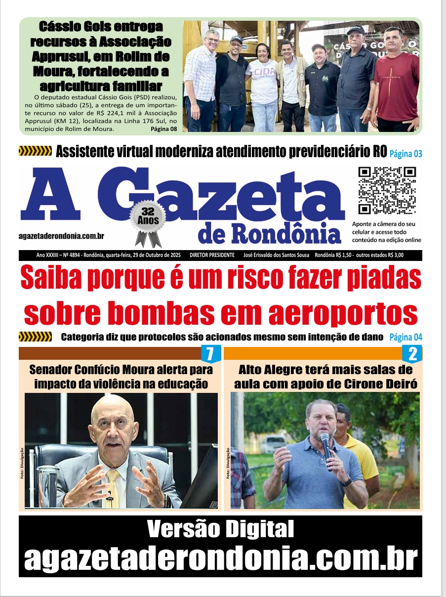 A Gazeta de Rondônia Edição 4894 – quarta-feira – 29.10.2025