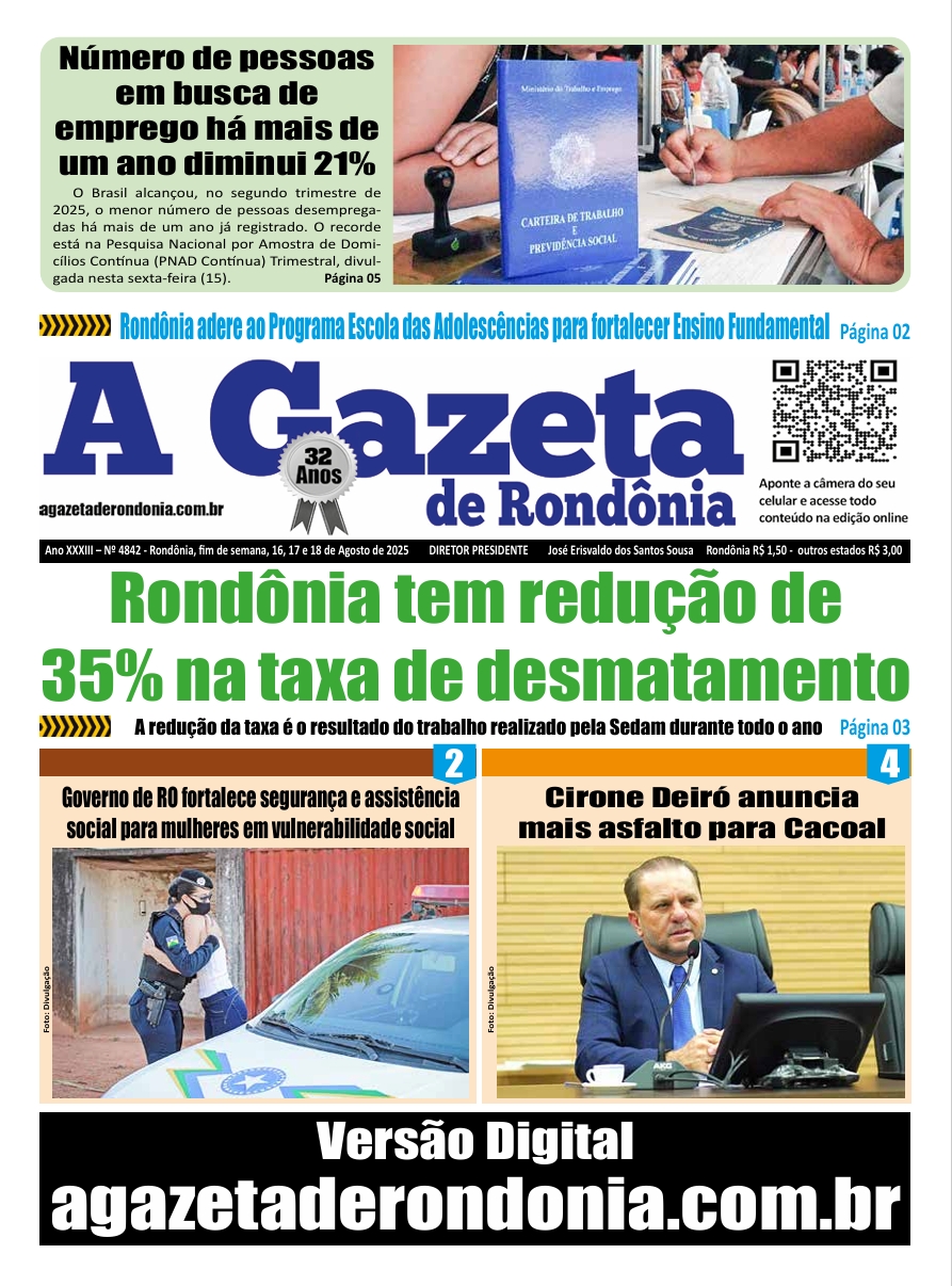 A Gazeta de Rondônia Edição 4842 – fim de semana – 16, 17 e 18.08.2025