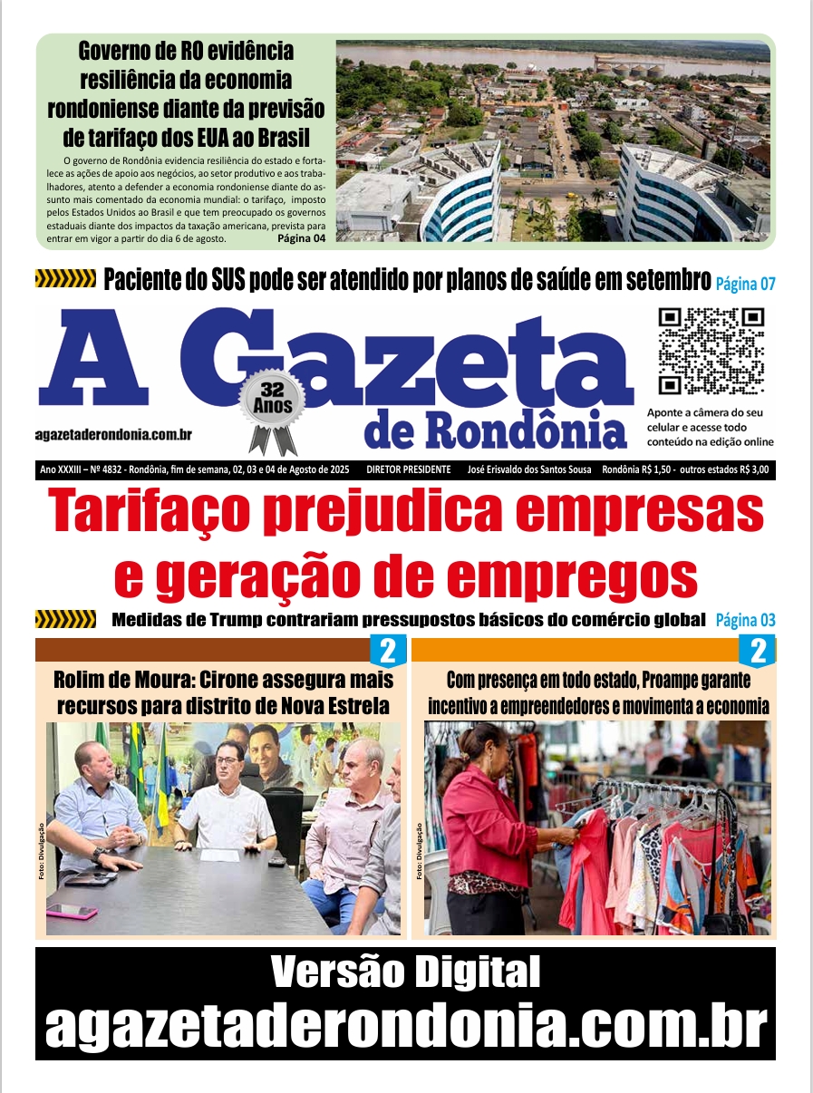 A Gazeta de Rondônia Edição 4832 – fim de semana – 02, 03 e 04.08.2025