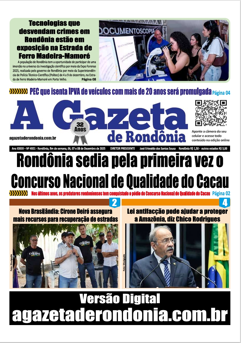 A Gazeta de Rondônia Edição 4921 – fim de semana – 06, 07 e 08.12.2025