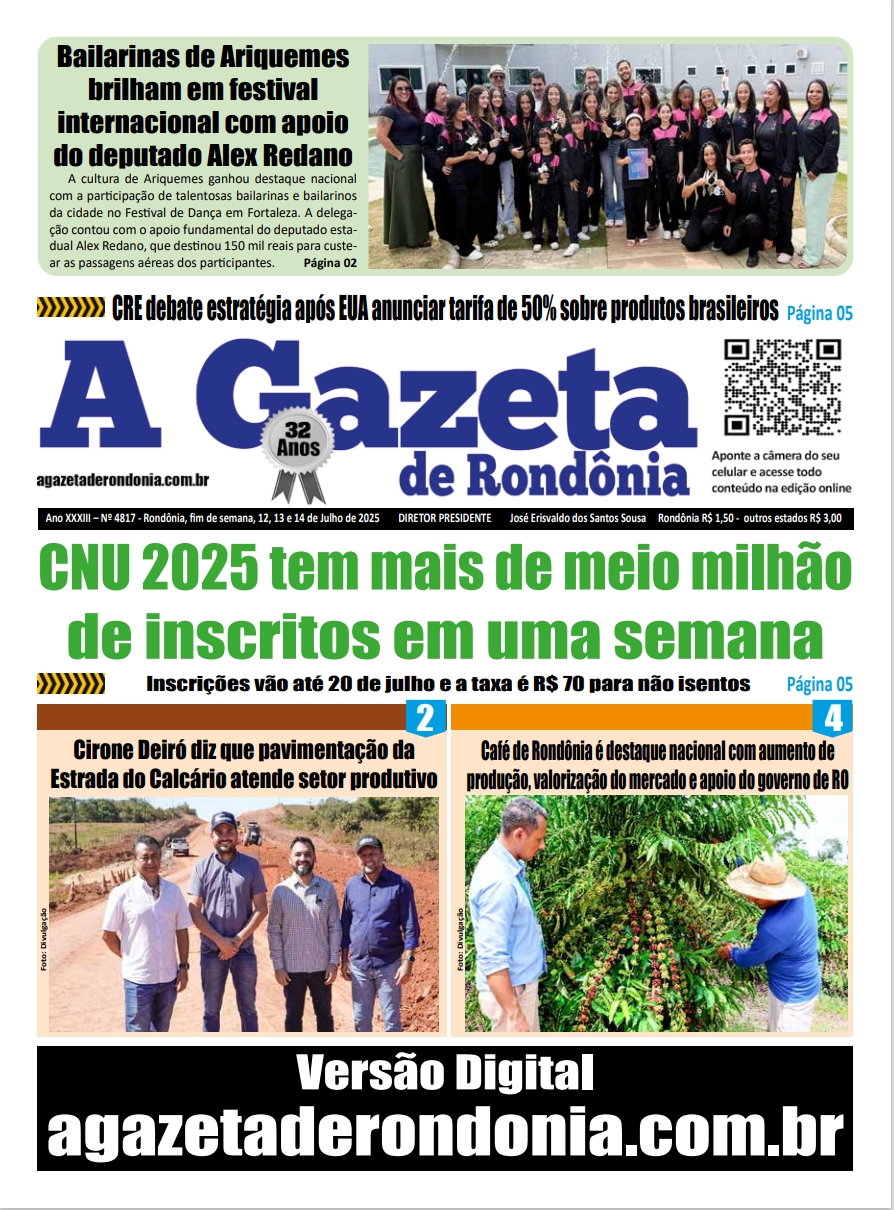 A Gazeta de Rondônia Edição 4817 – fim de semana – 12, 13 e 14.07.2025