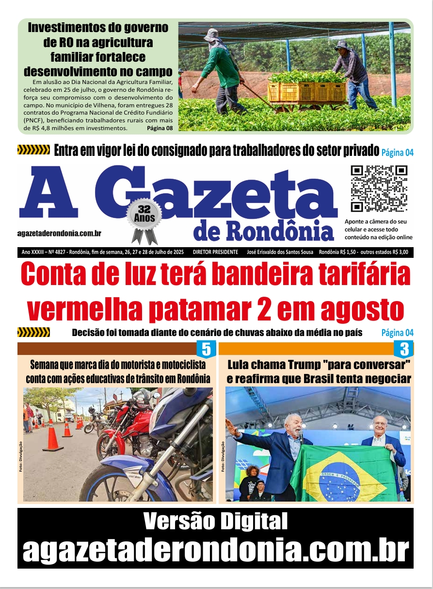A Gazeta de Rondônia Edição 4827 – fim de semana – 26, 27 e 28.07.2025