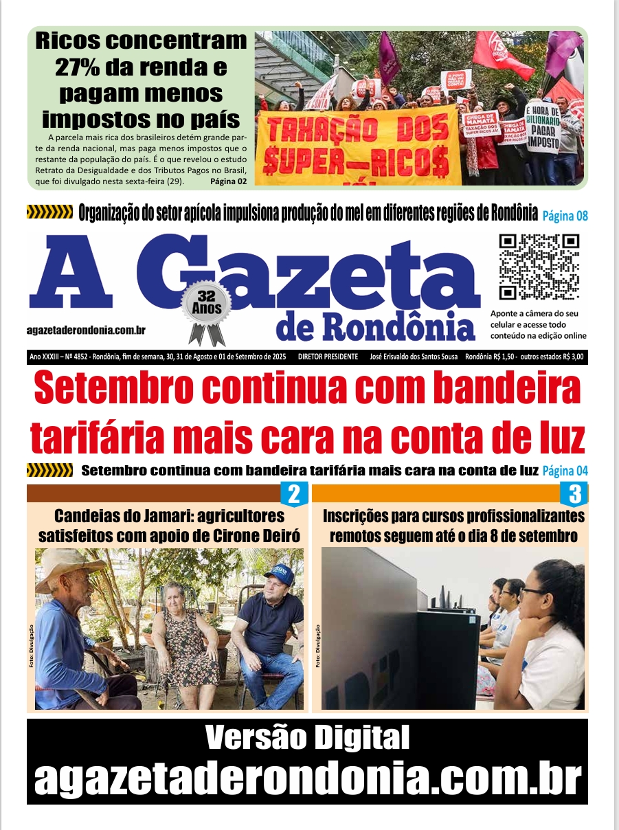 A Gazeta de Rondônia Edição 4852 – fim de semana – 30, 31.08 e 01.09.2025
